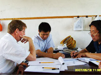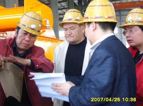 公司領(lǐng)導(dǎo)與客戶商討技術(shù)問題 | 公司領(lǐng)導(dǎo)與國外客人進(jìn)行技術(shù)交流 | 車間一隅 |